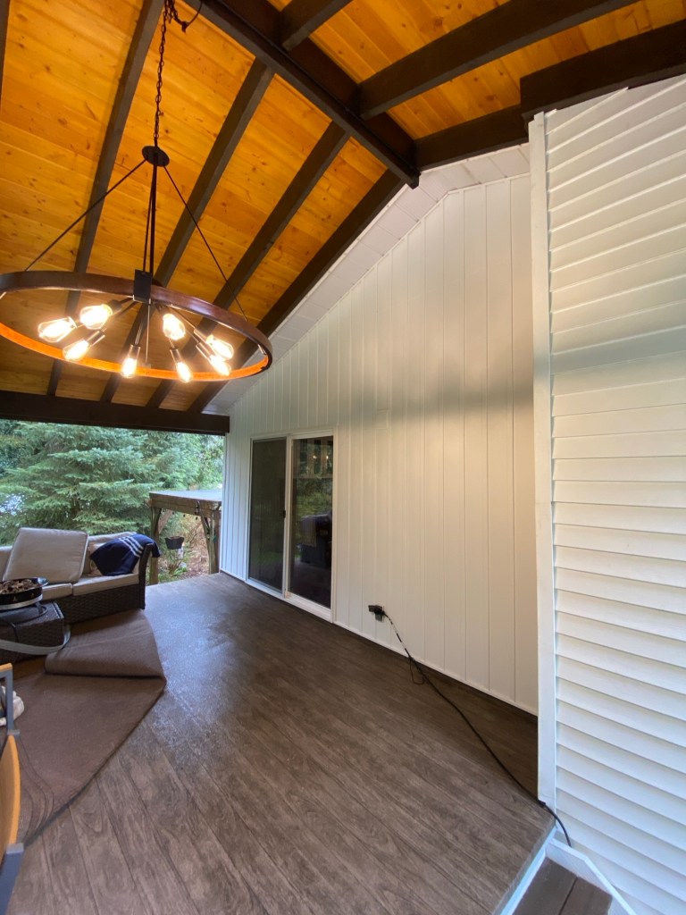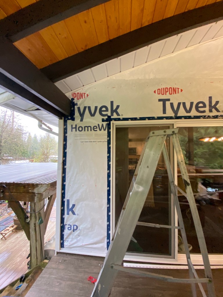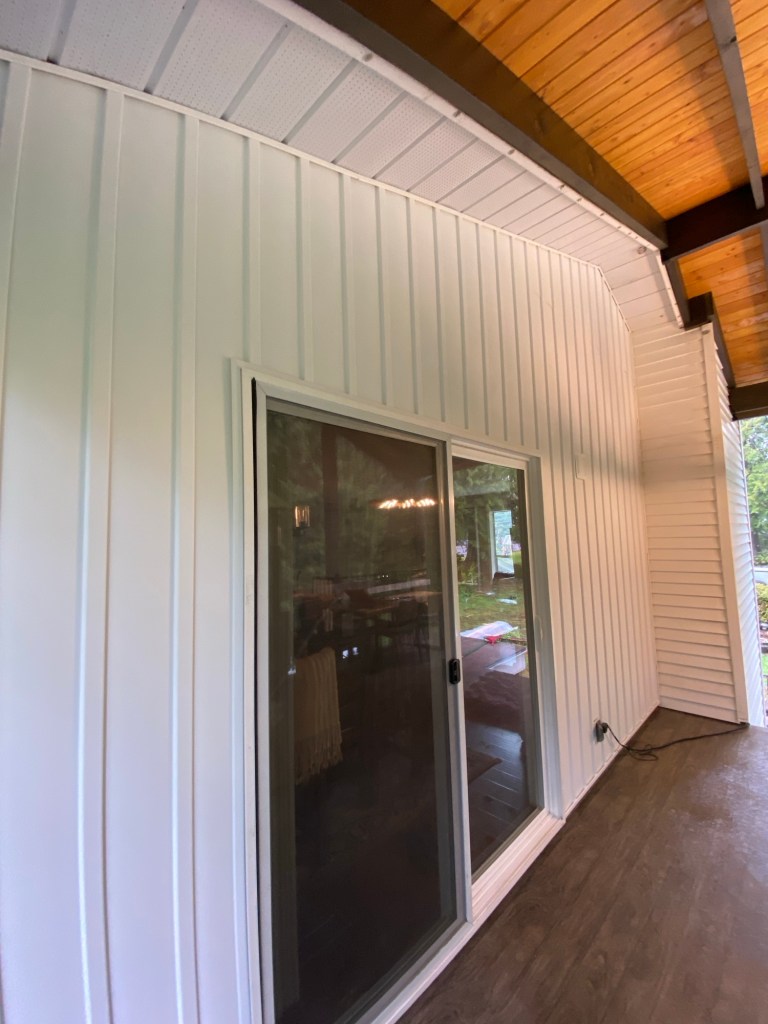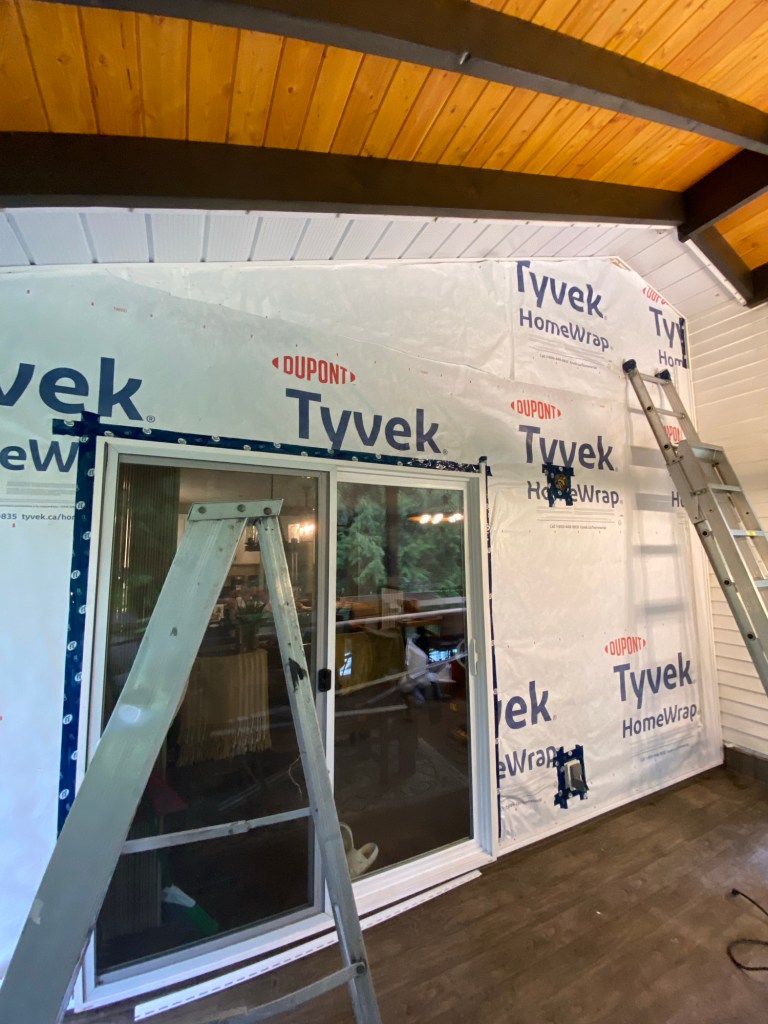 Premium vinyl board & batten in frost white colour. Tyvek home wrap and J channels installation. Click to see more pictures on our website. SidingPro.ca.