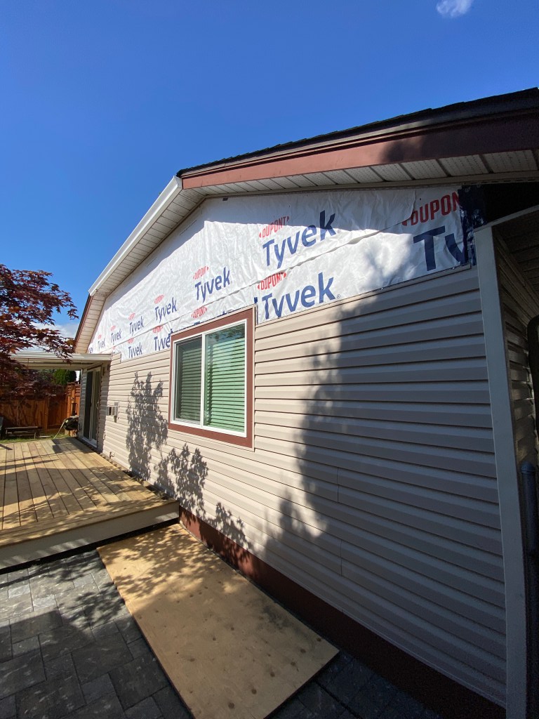 Premium vinyl D4.5 Dutchlap installation. Tyvek homewrap, J channels, and mounting blocks light and plug plates, hose bib installation.
