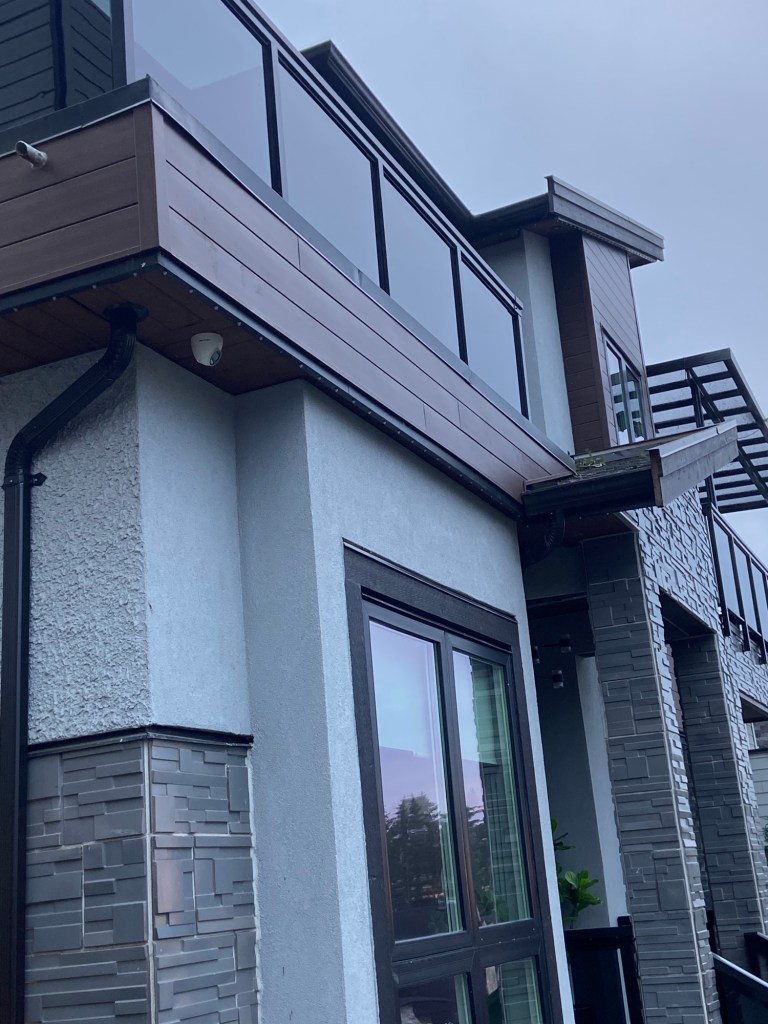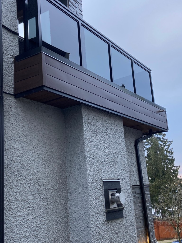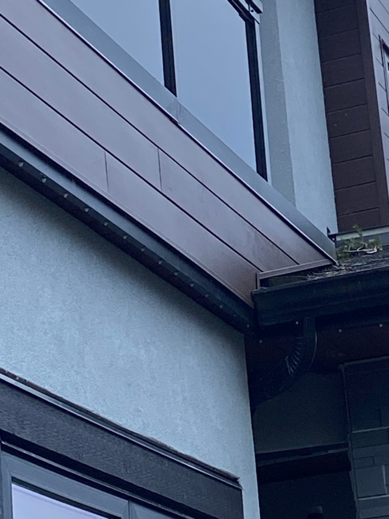 Black perforated vinyl soffits and J channels installation by Professional Siding.
