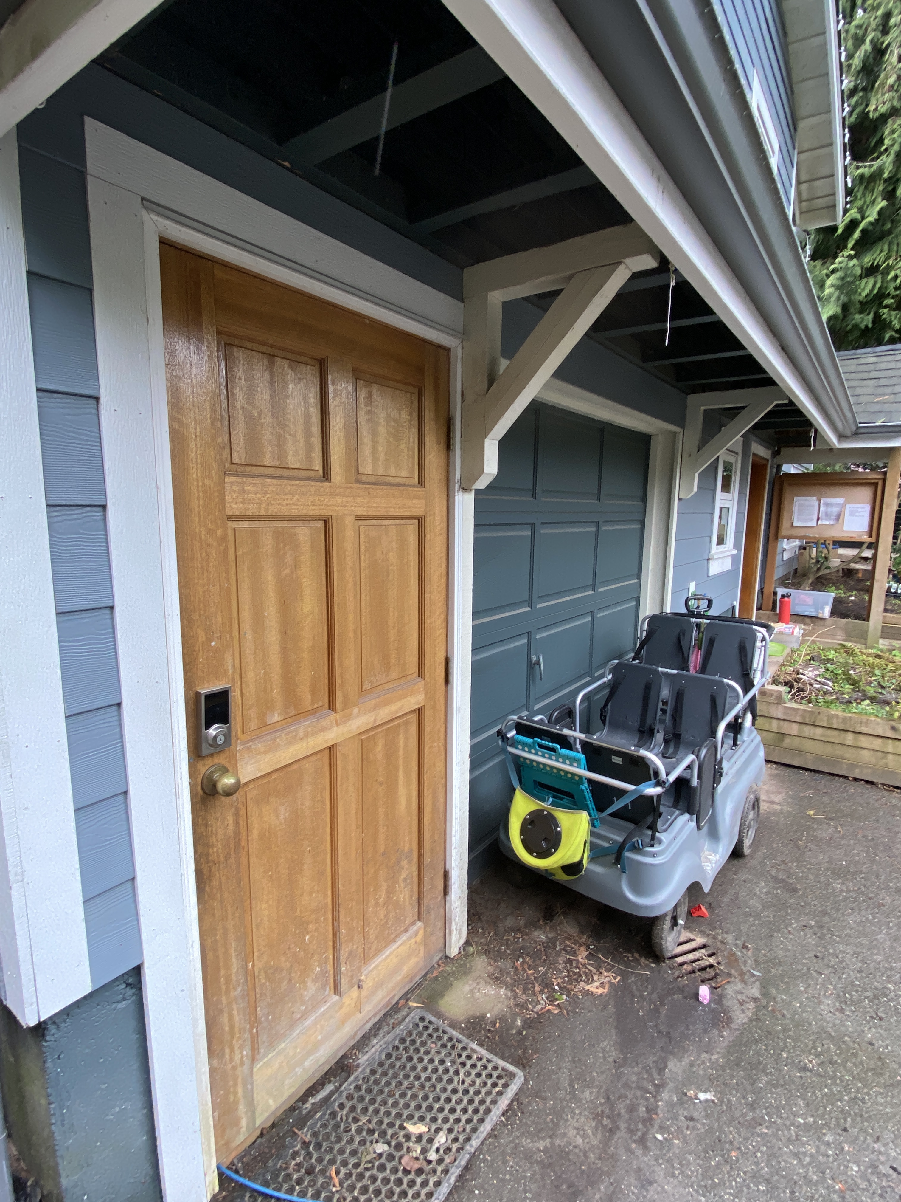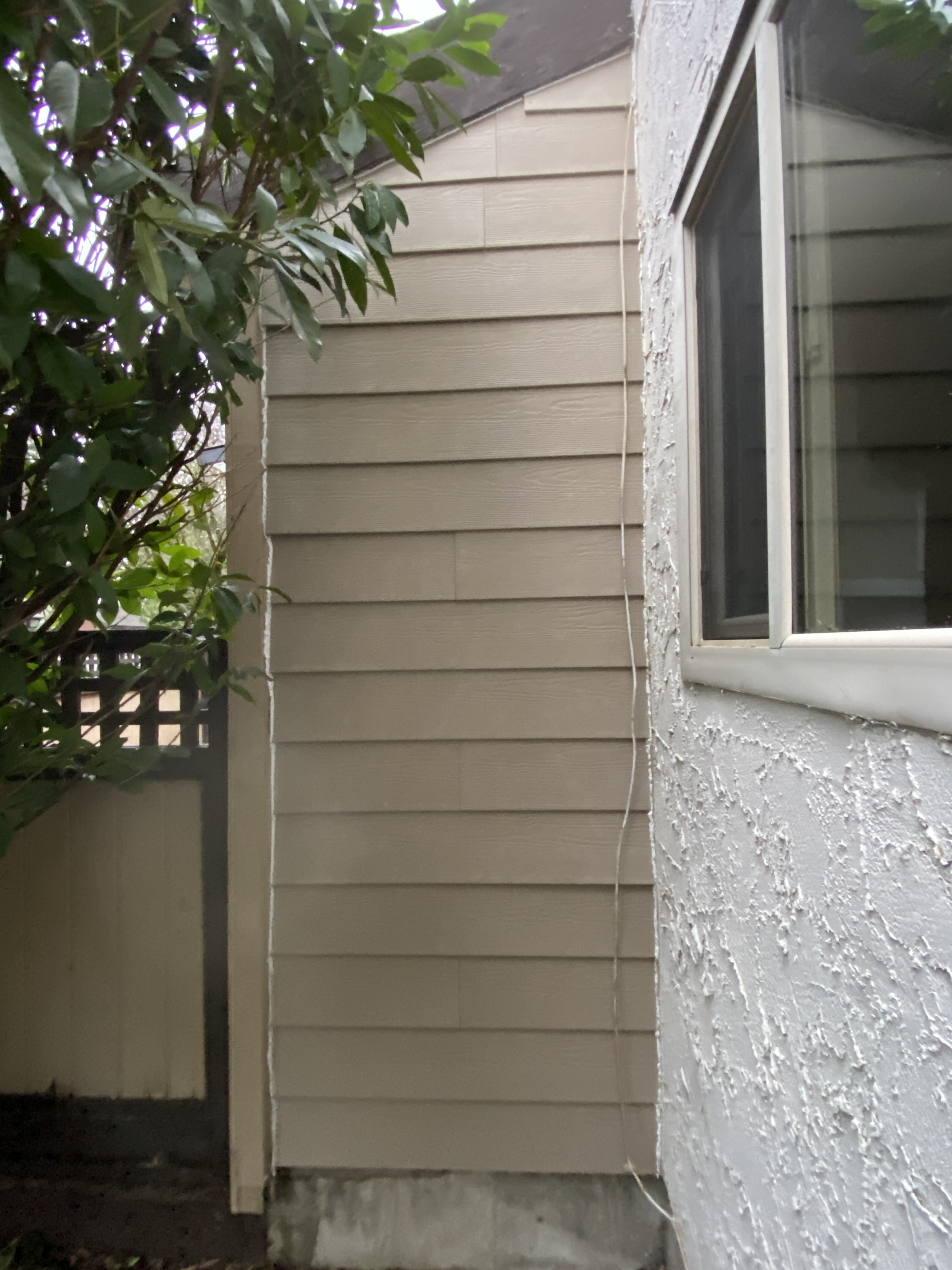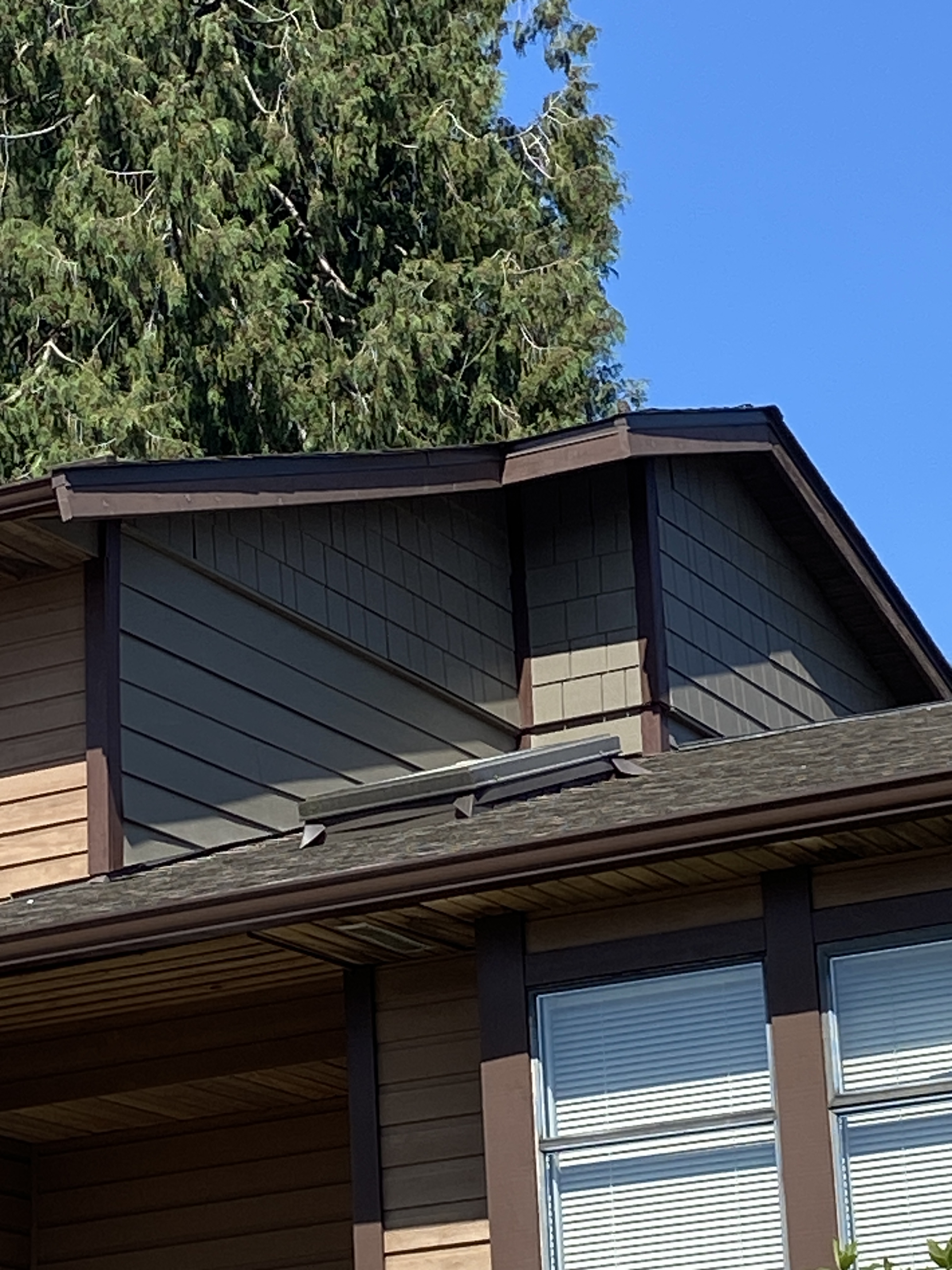 Professionally executed fibre cement replacing old rotten cedar siding project. Hardie horizontal lap 7” reveal in Khaki Brown, cedarmill finish. Custom metal flashings and decorative trims for doors, garage opening, and windows with sloped sill. Metal flashings for existing stucco and new Hardie siding transition. Rainscreen strappings, bug screens, Tyvek homewrap, vented starter strips, and new mounting blocks. Clean up and waste removal included.