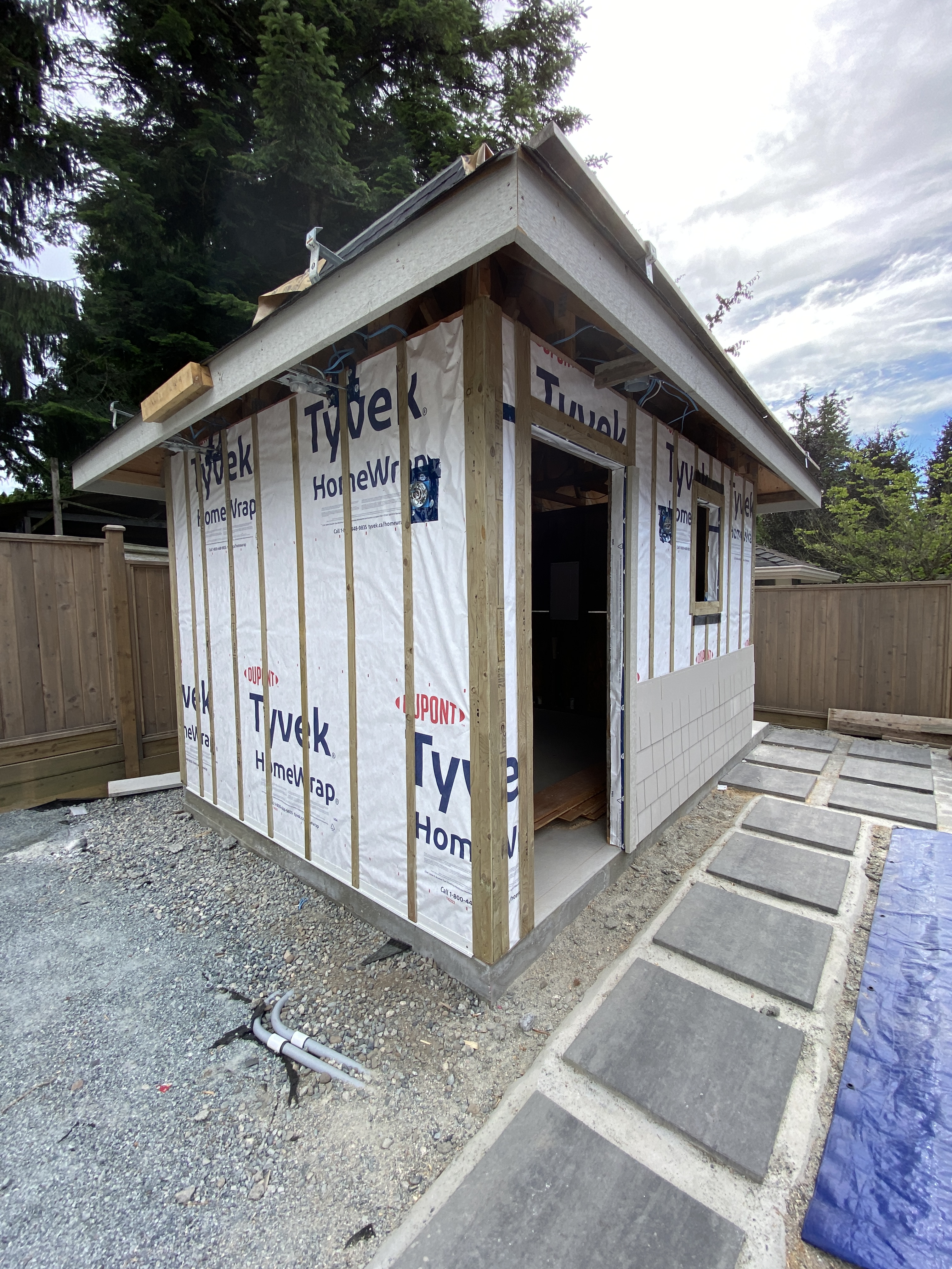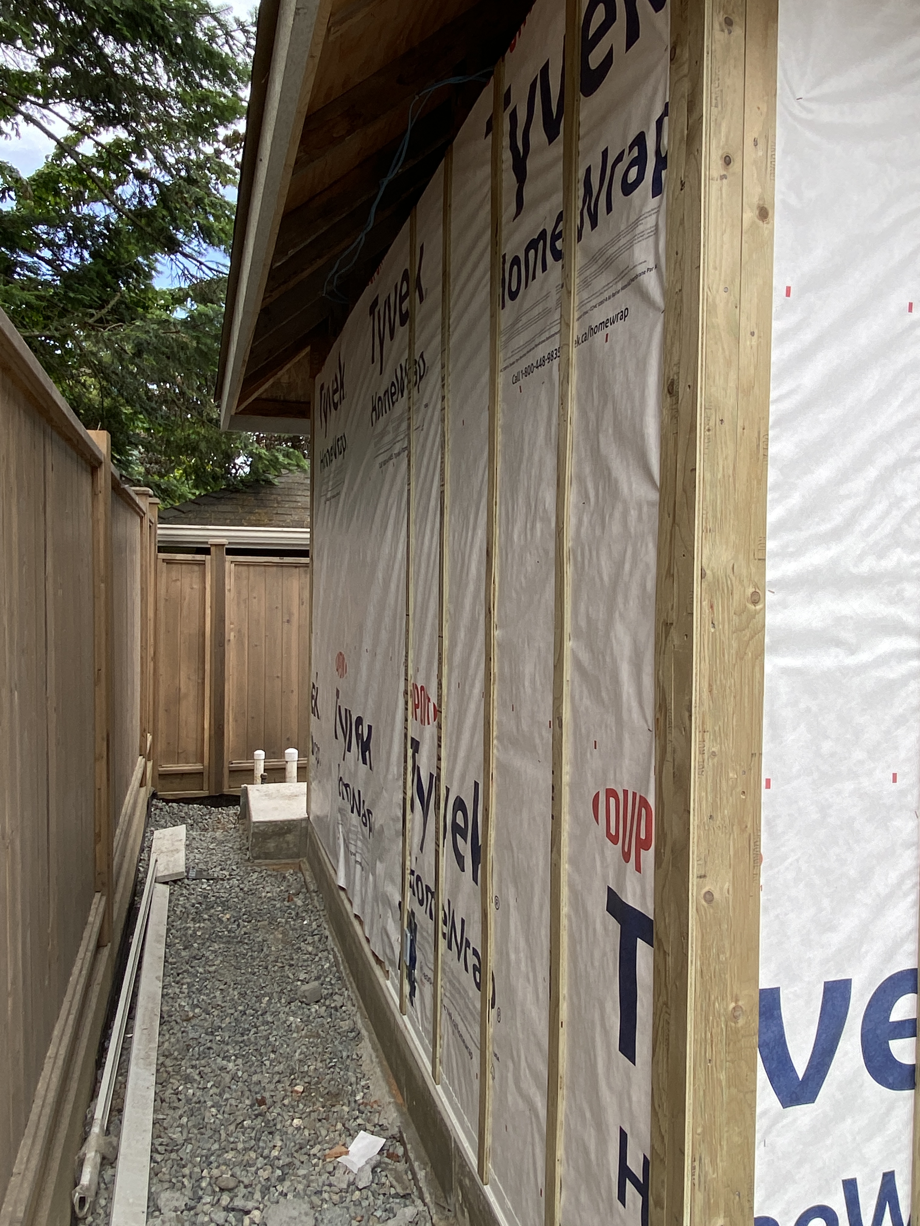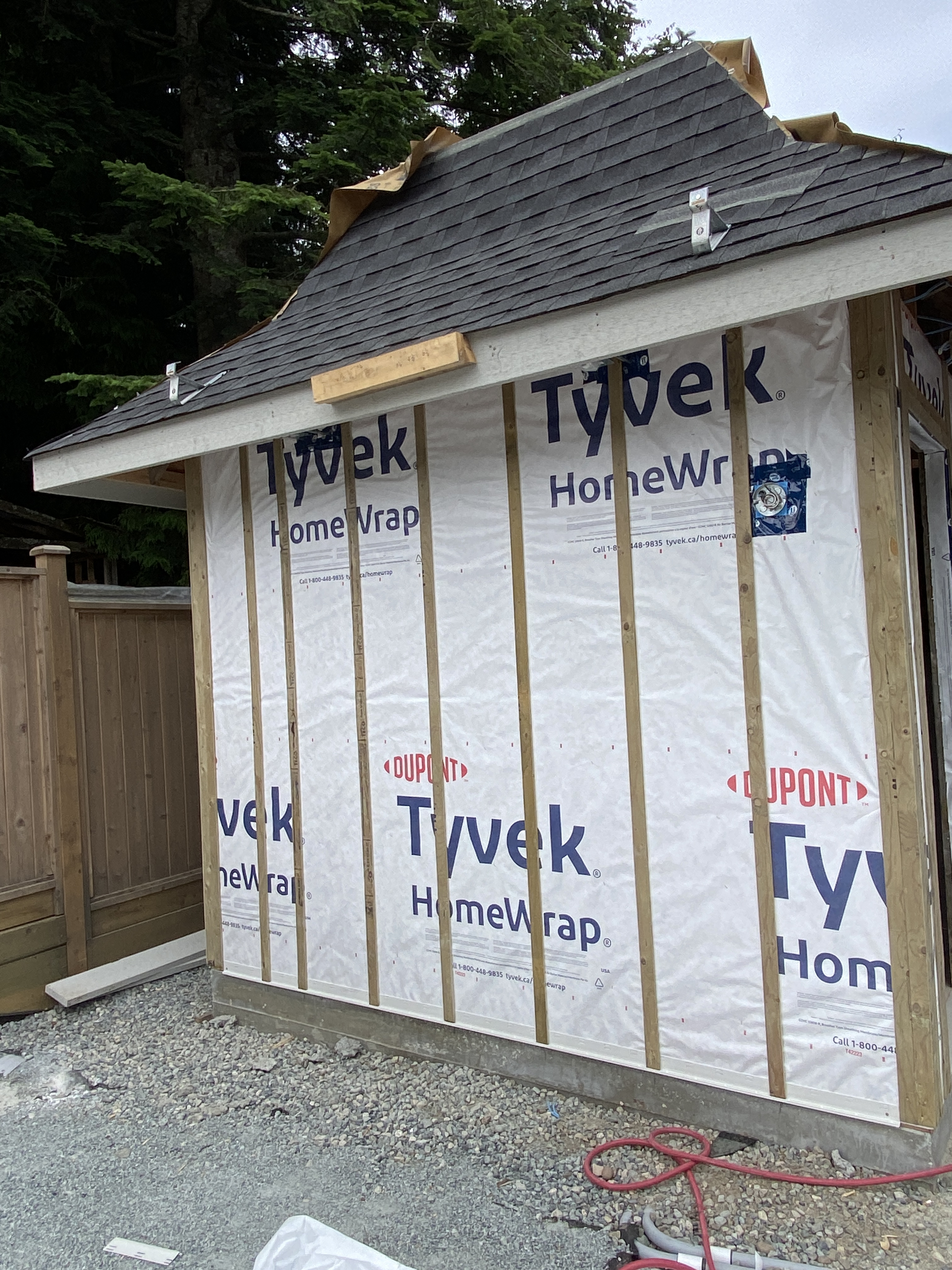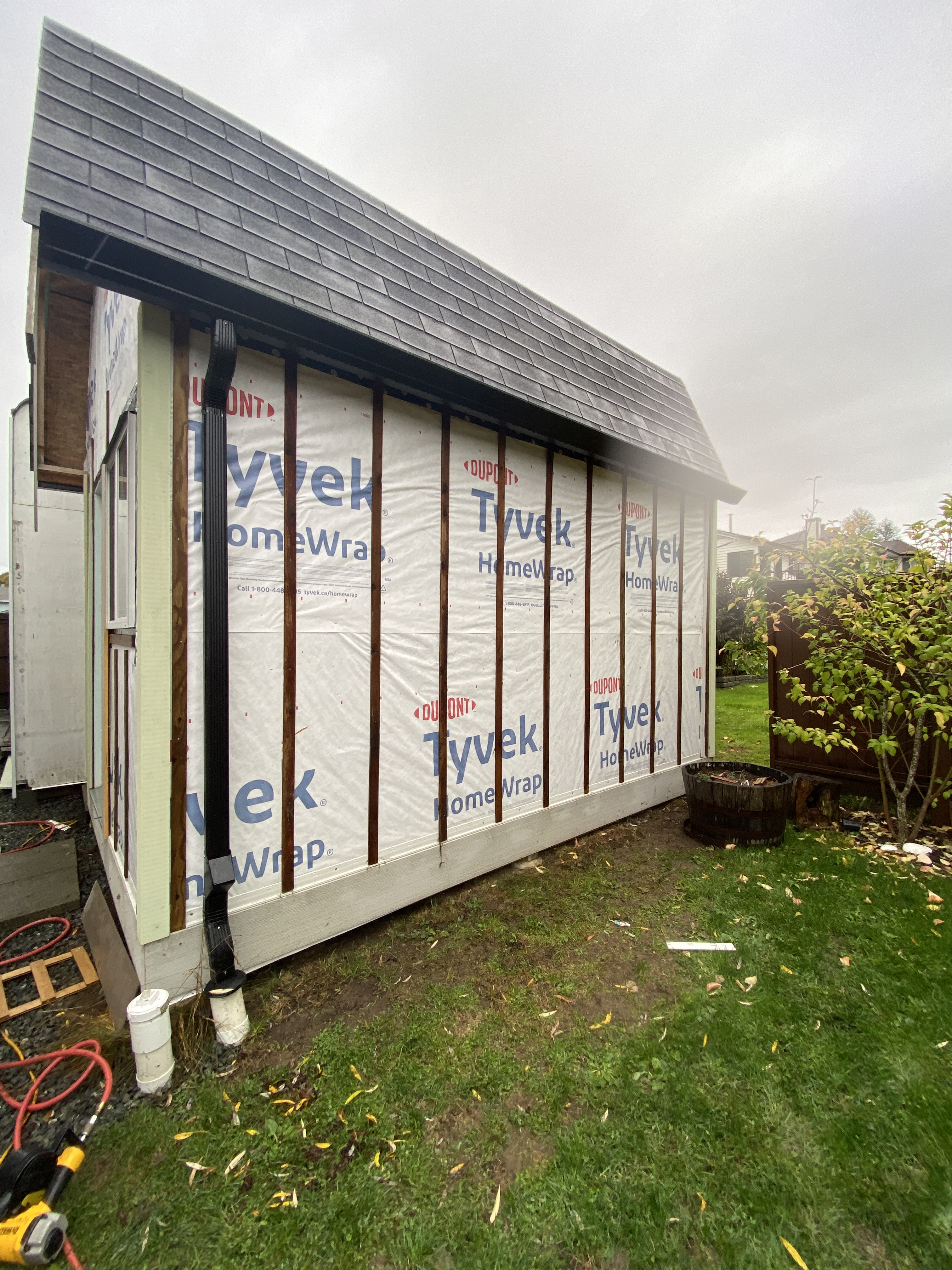 Tyvek Home Wrap & Treated Wood Rainscreen Strappings for Shed