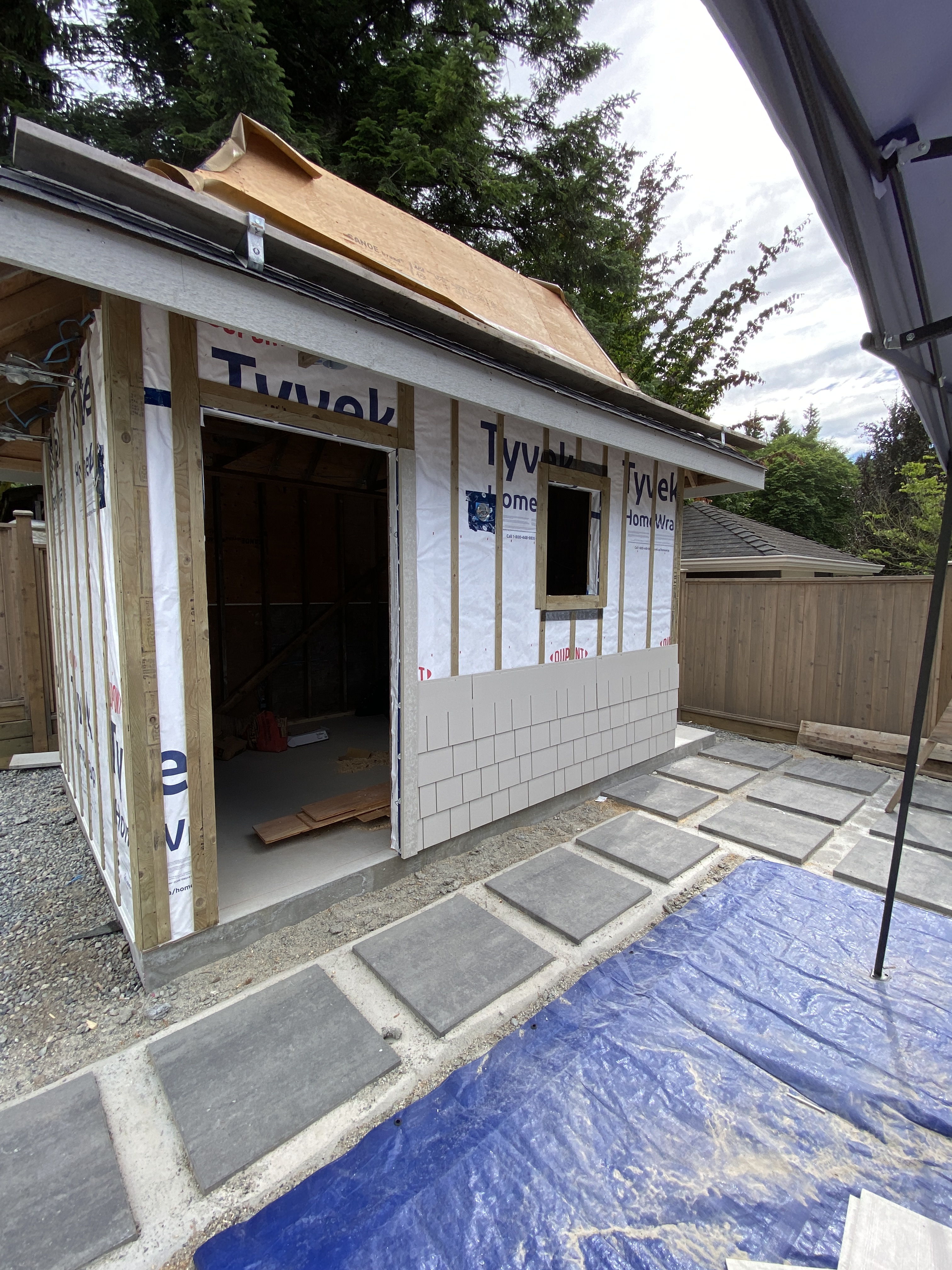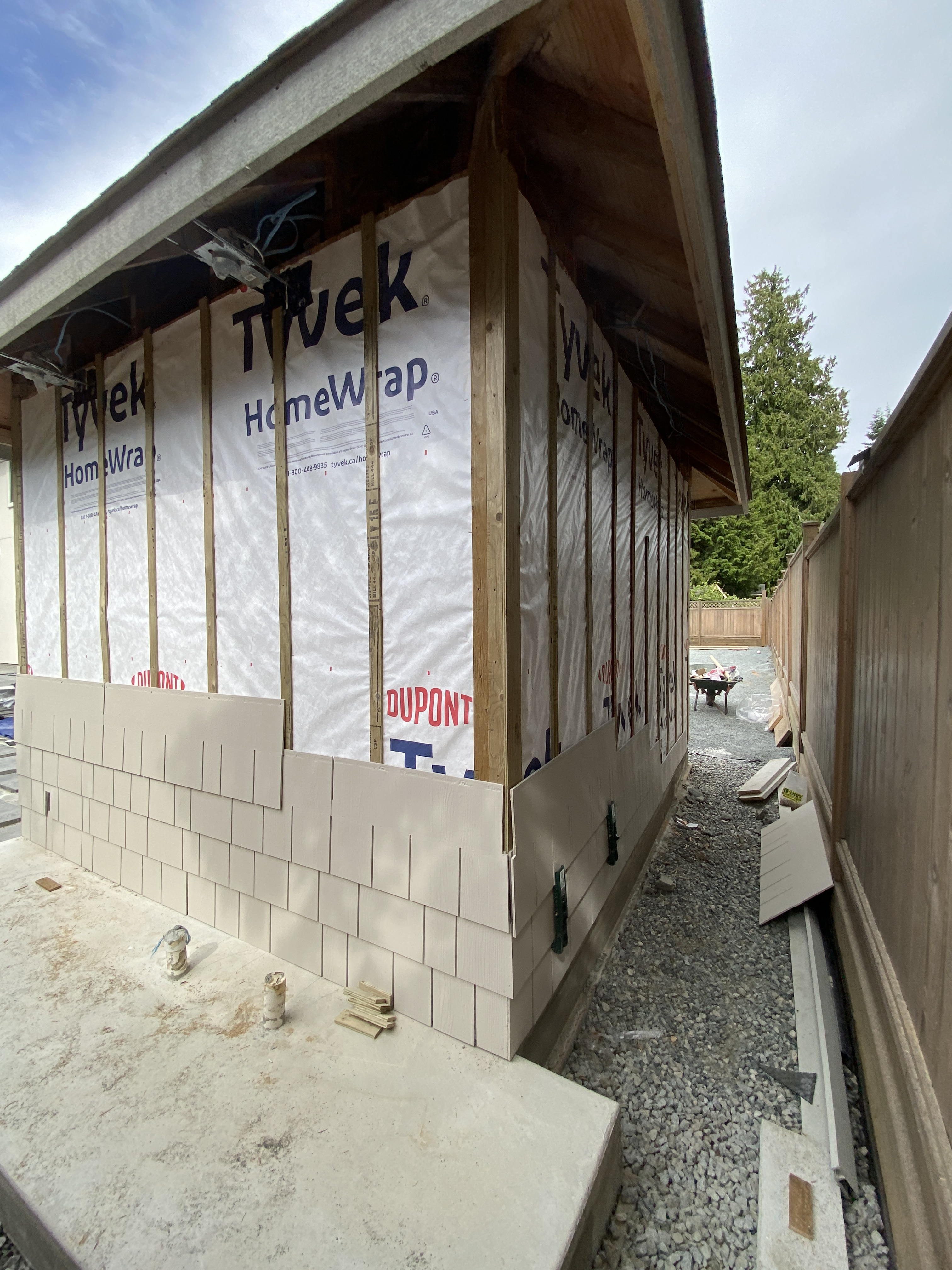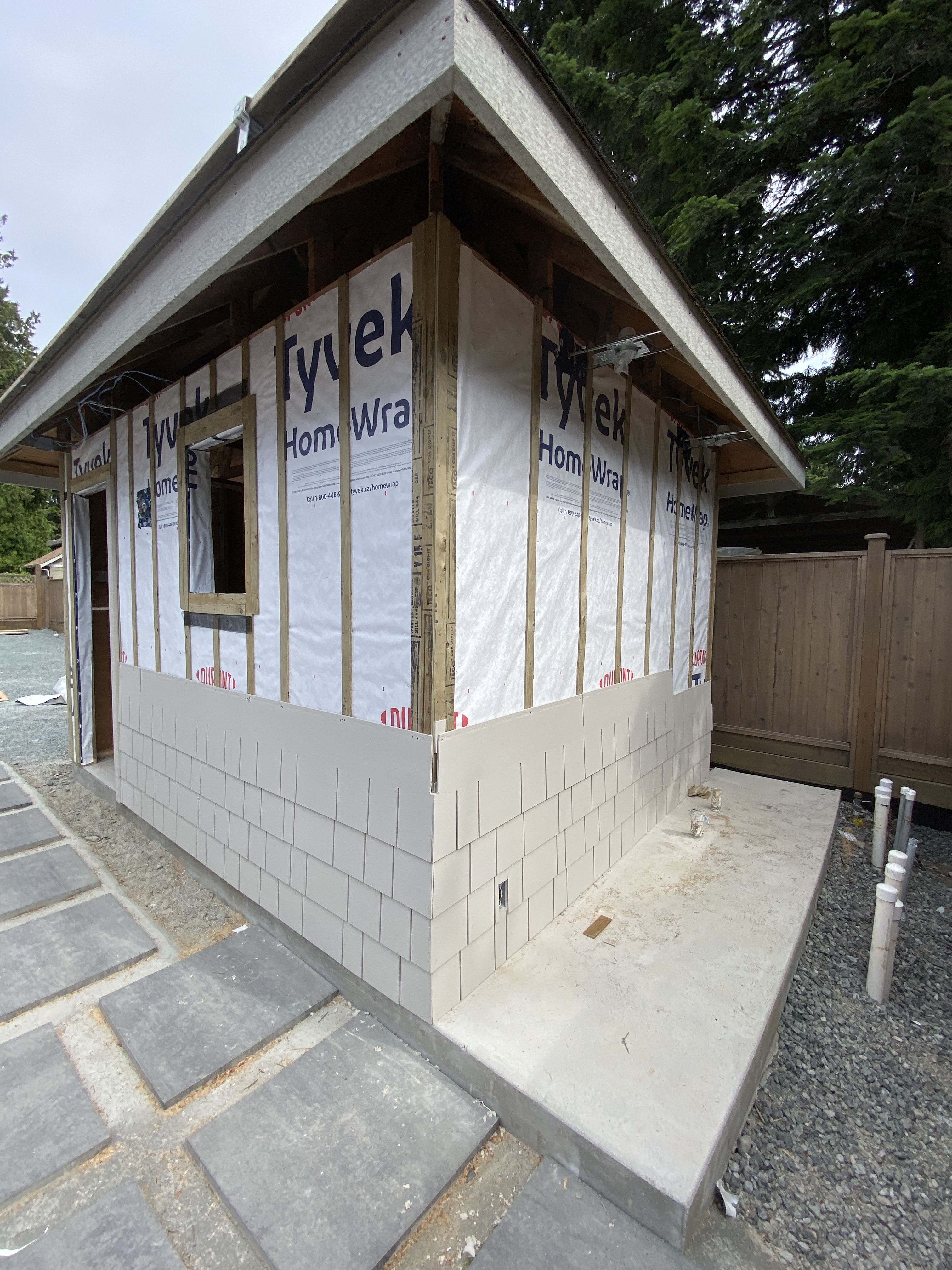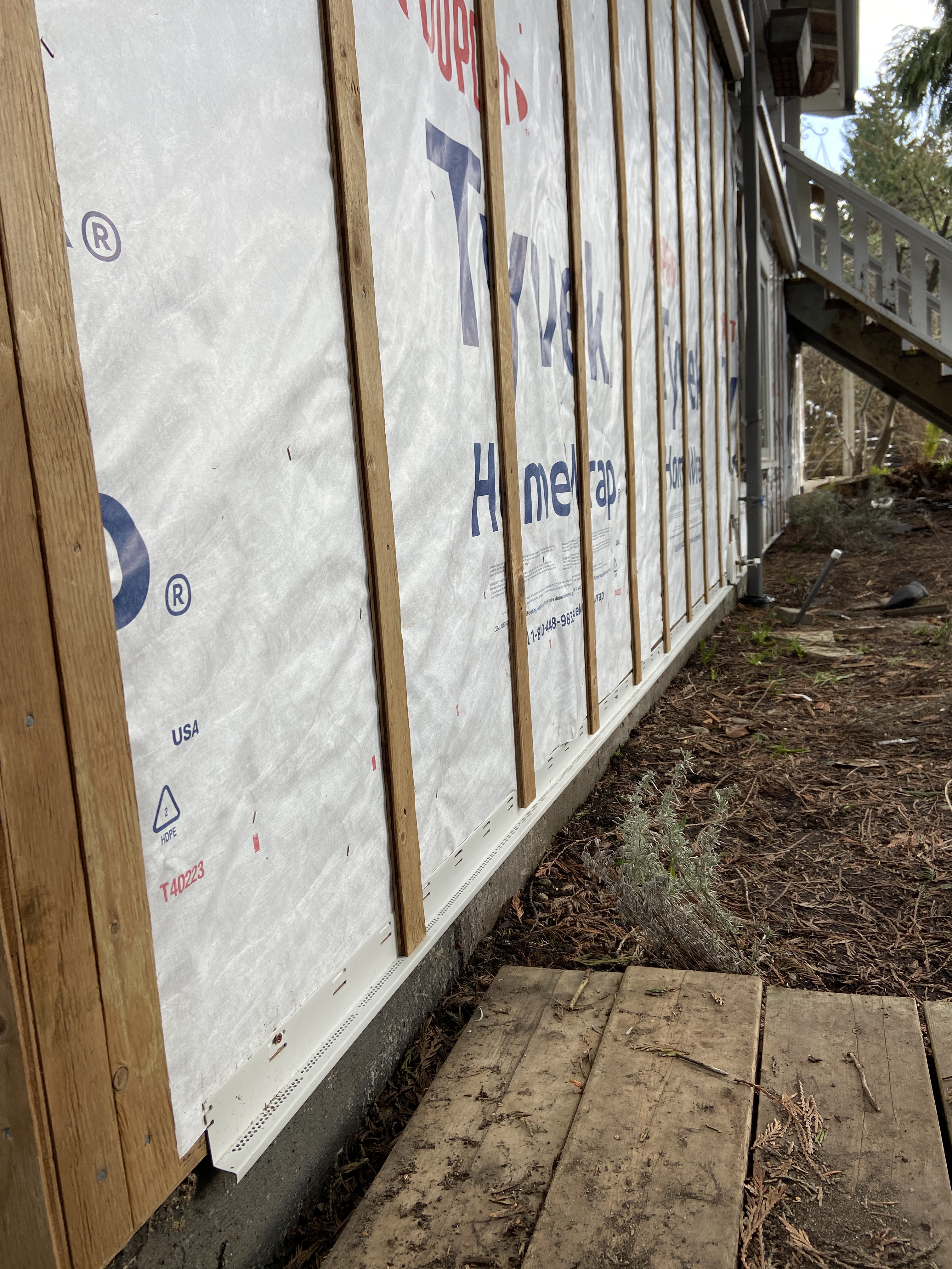 Tyvek Home Wrap & Treated Wood Rainscreen Strappings for Shed