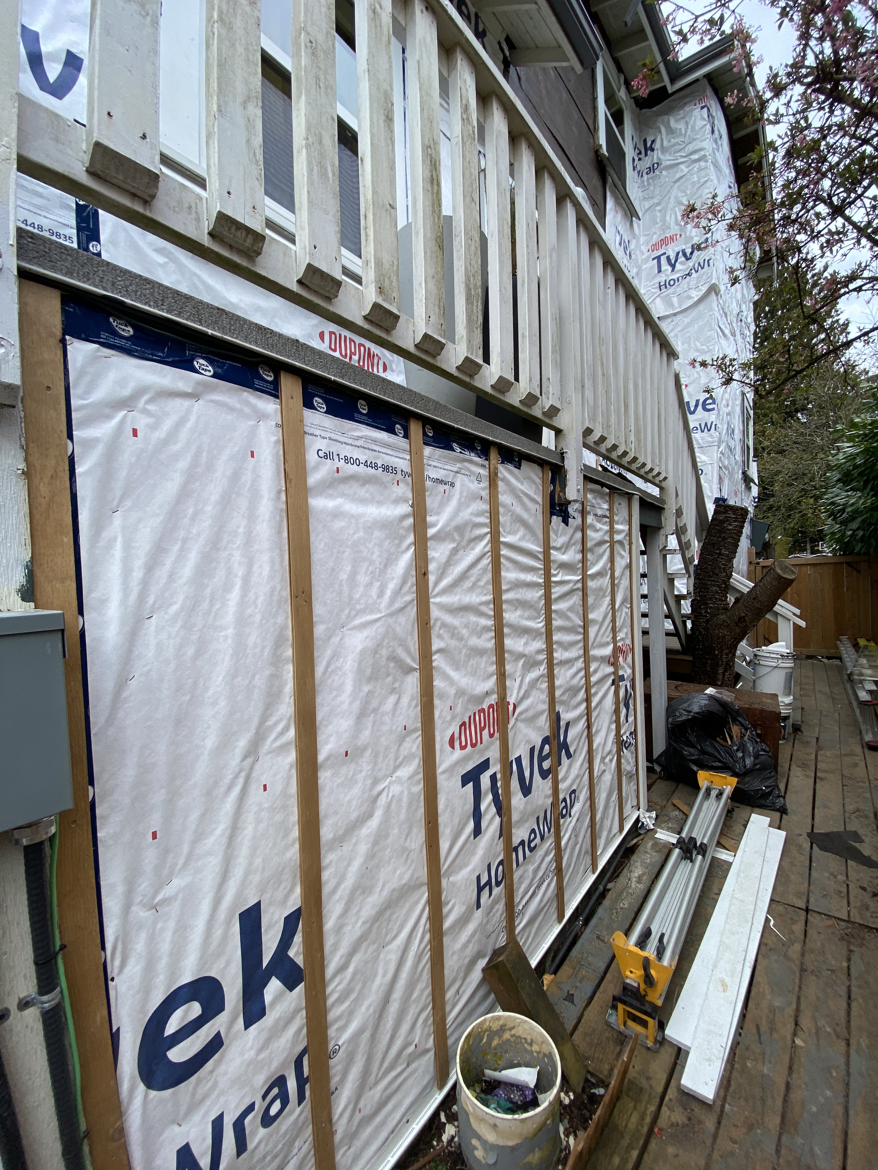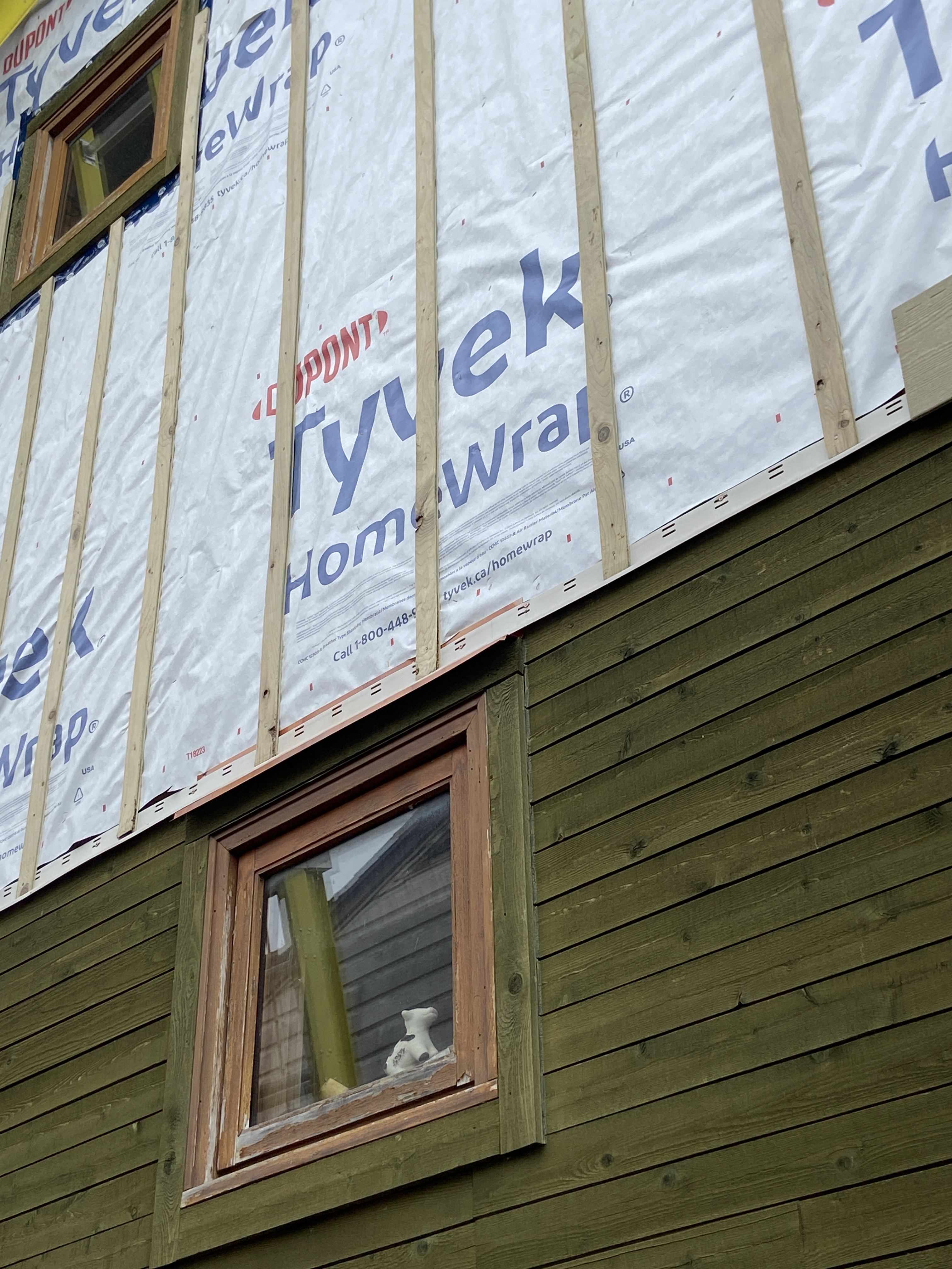 Tyvek Home Wrap & Treated Wood Rainscreen Strappings for House