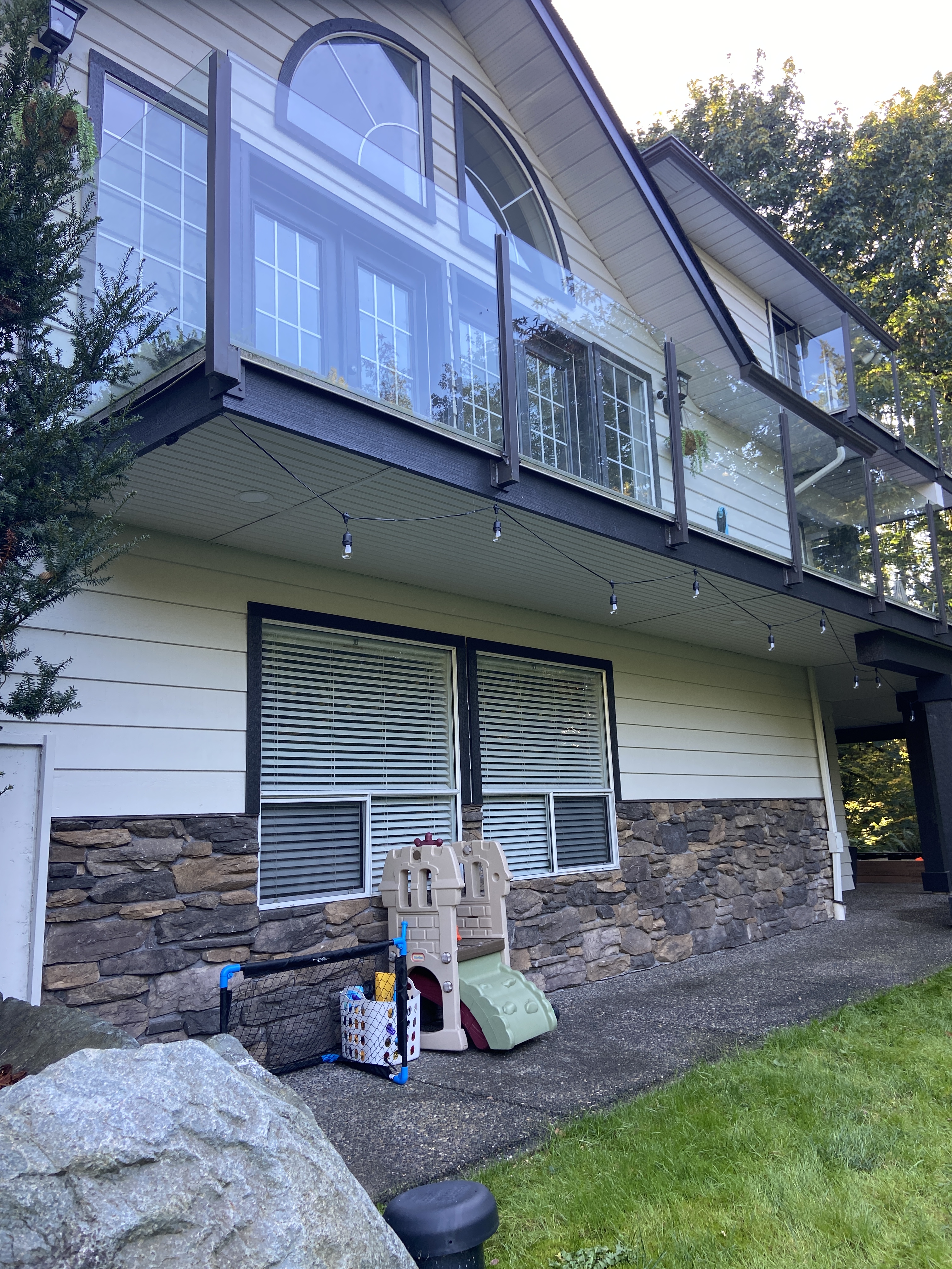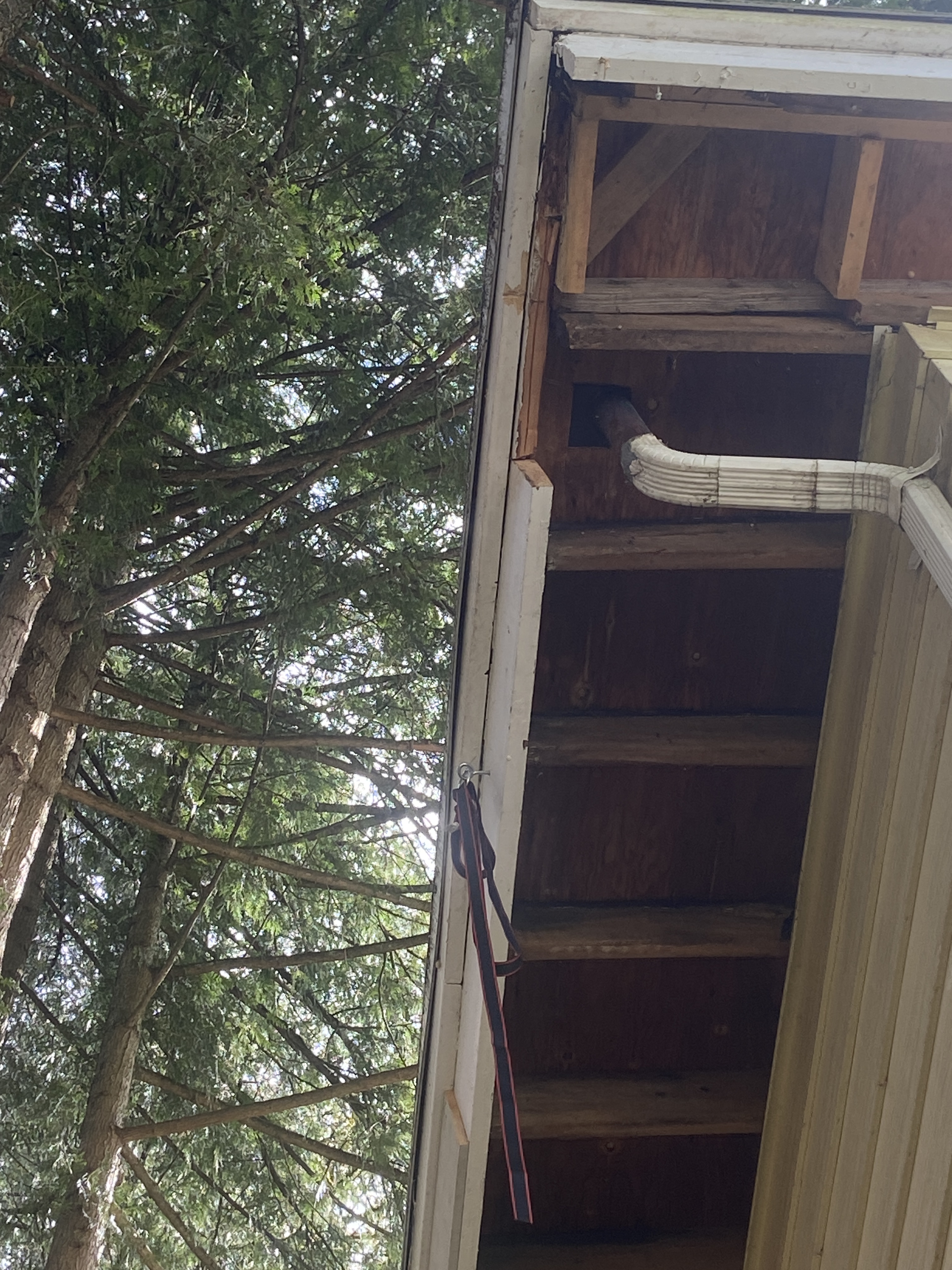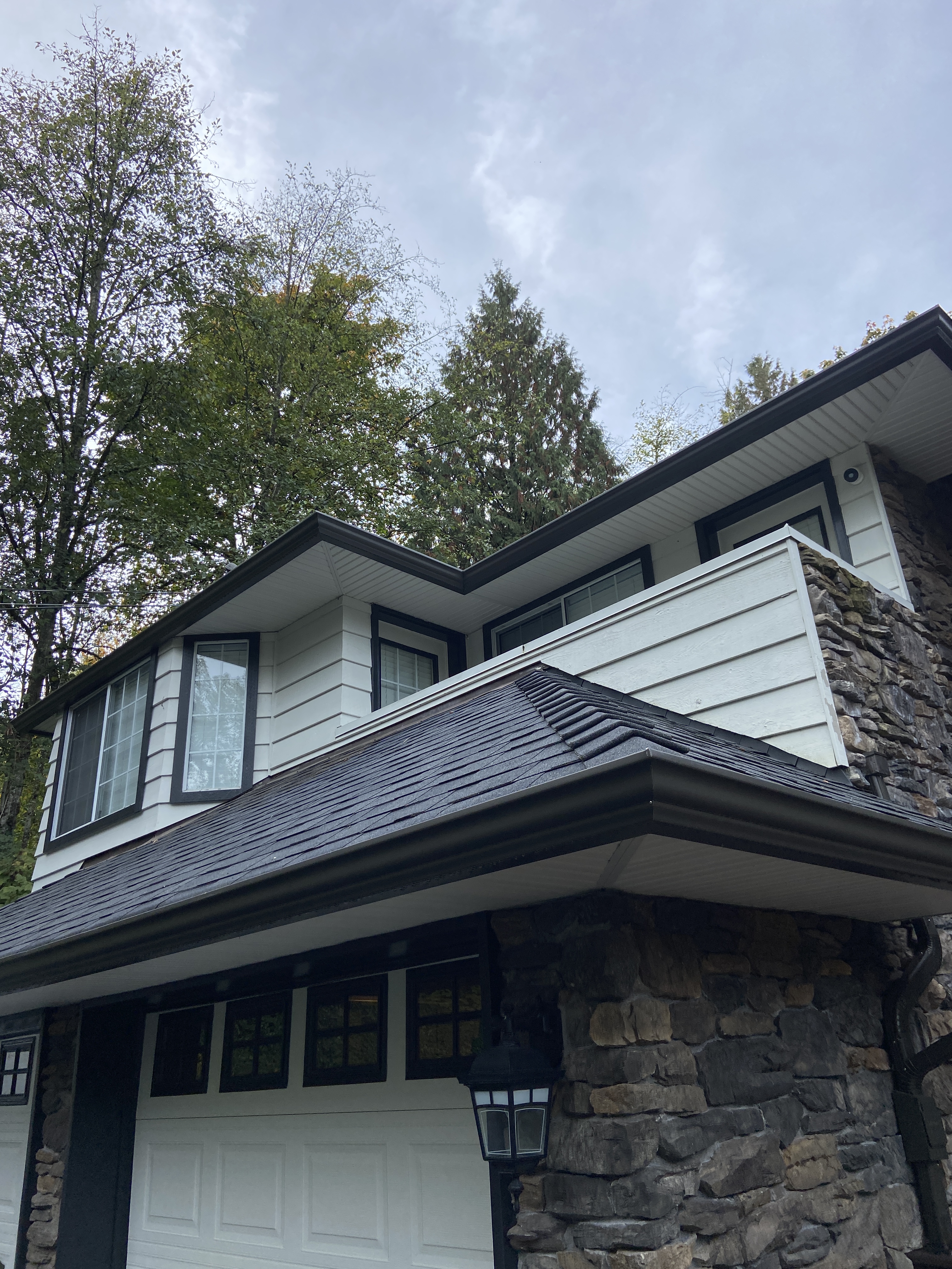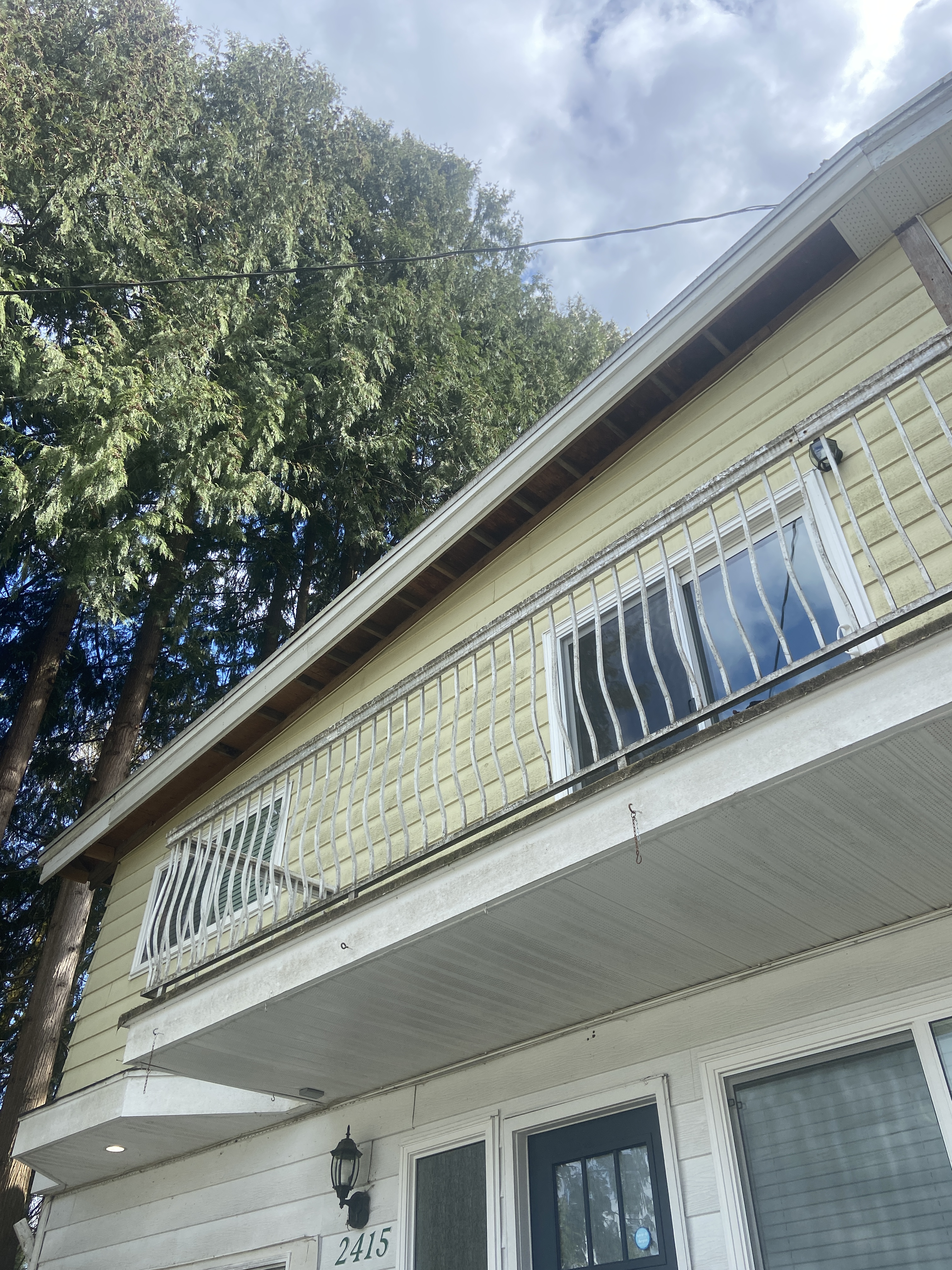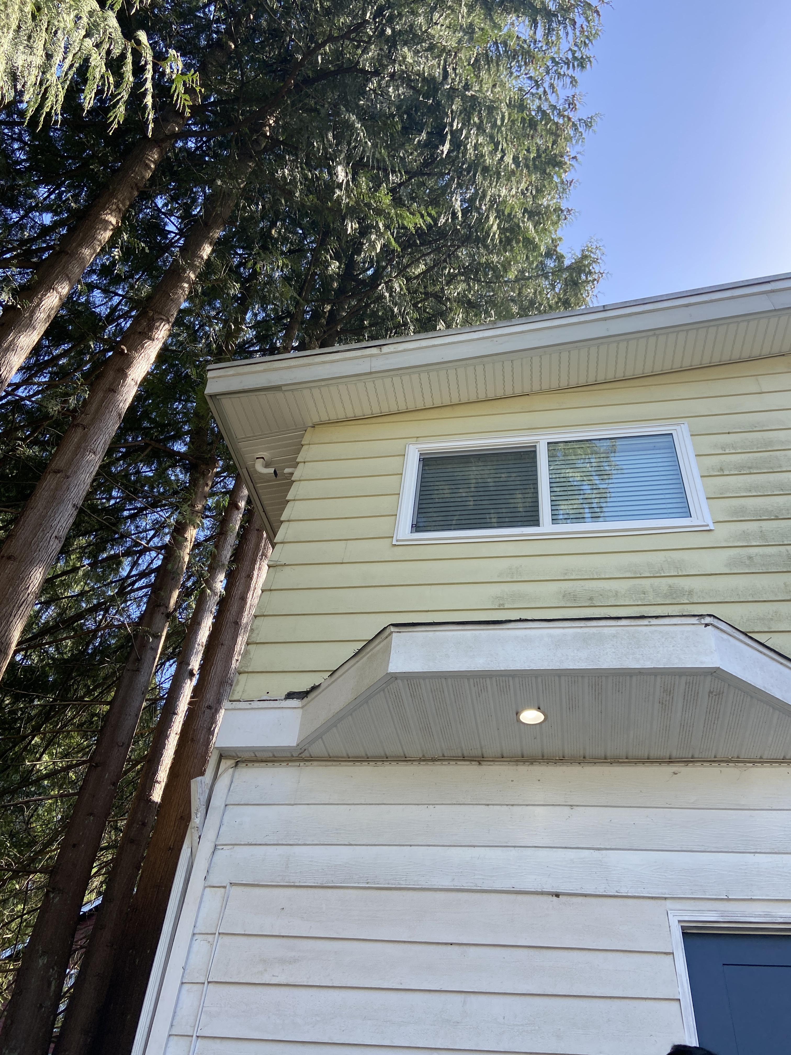 Professional Siding replaced old rotten high maintenance cedar soffits with new modern low maintenance vented beaded vinyl soffits. Mitered corners.