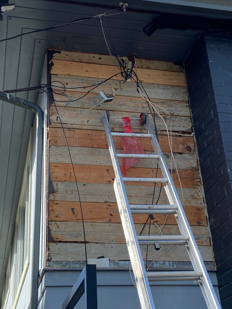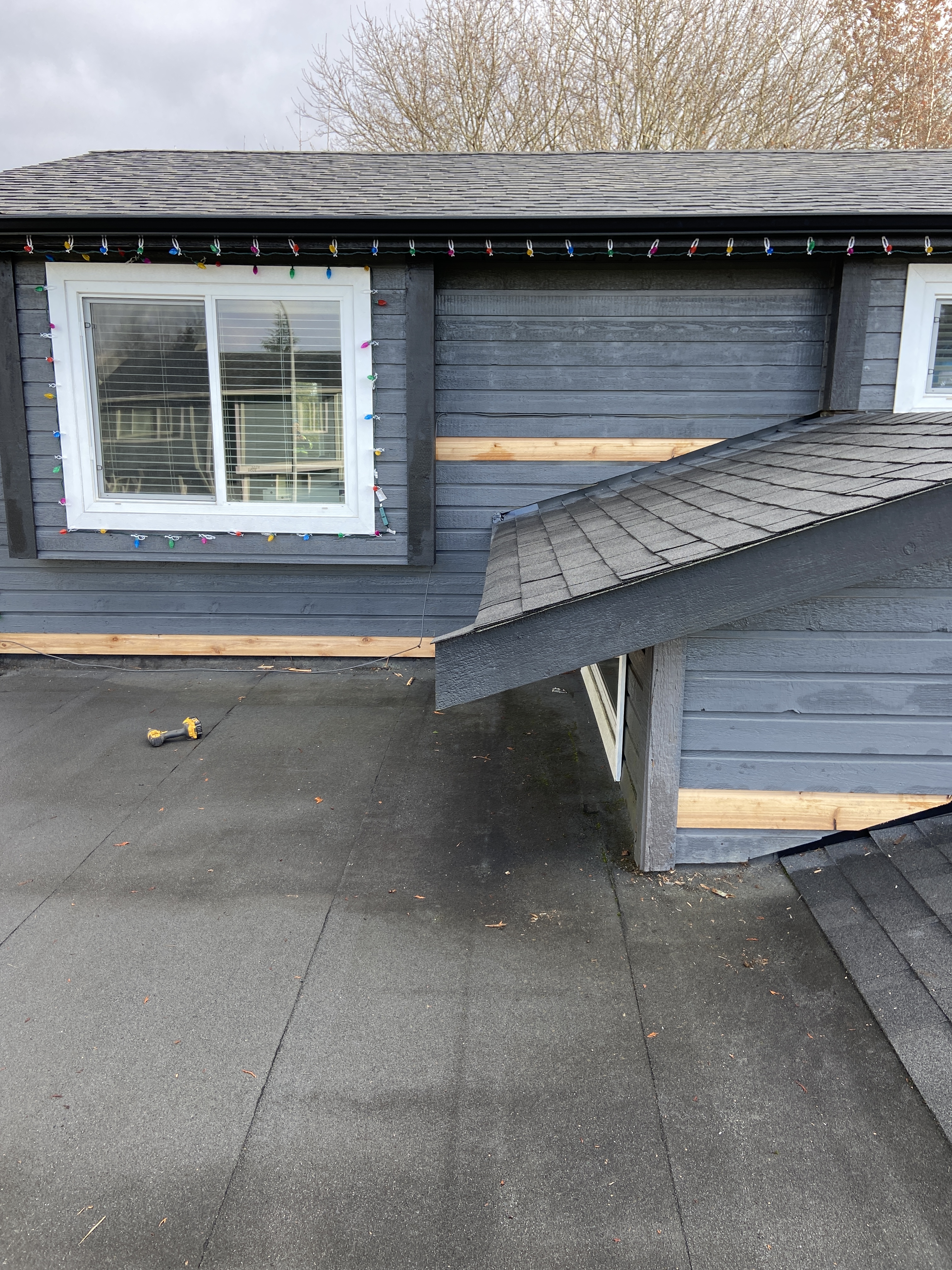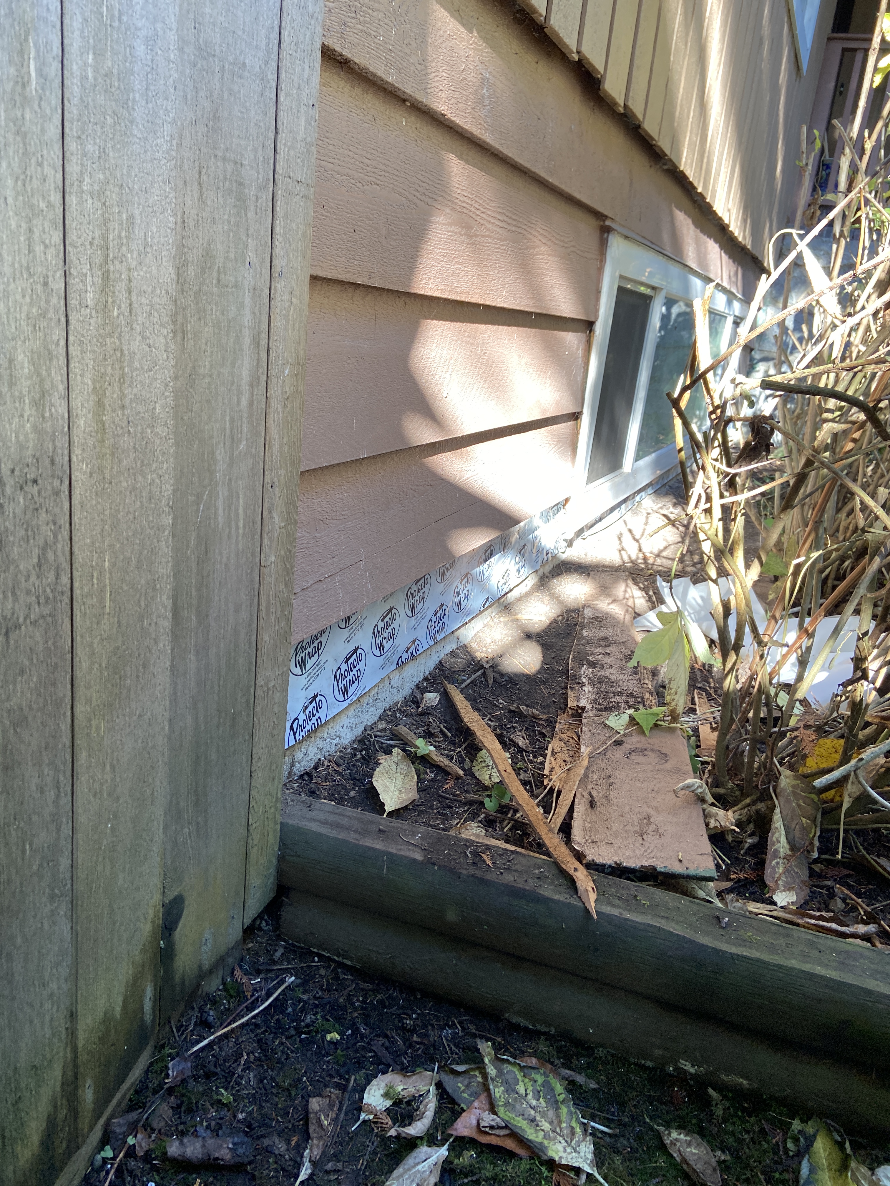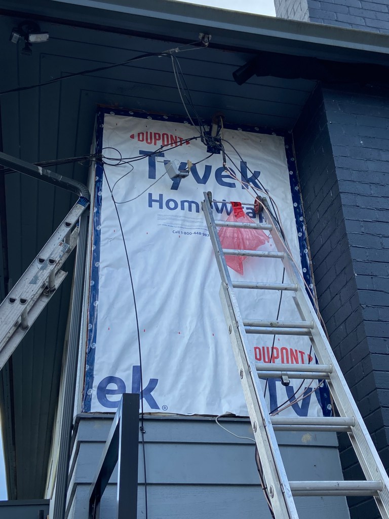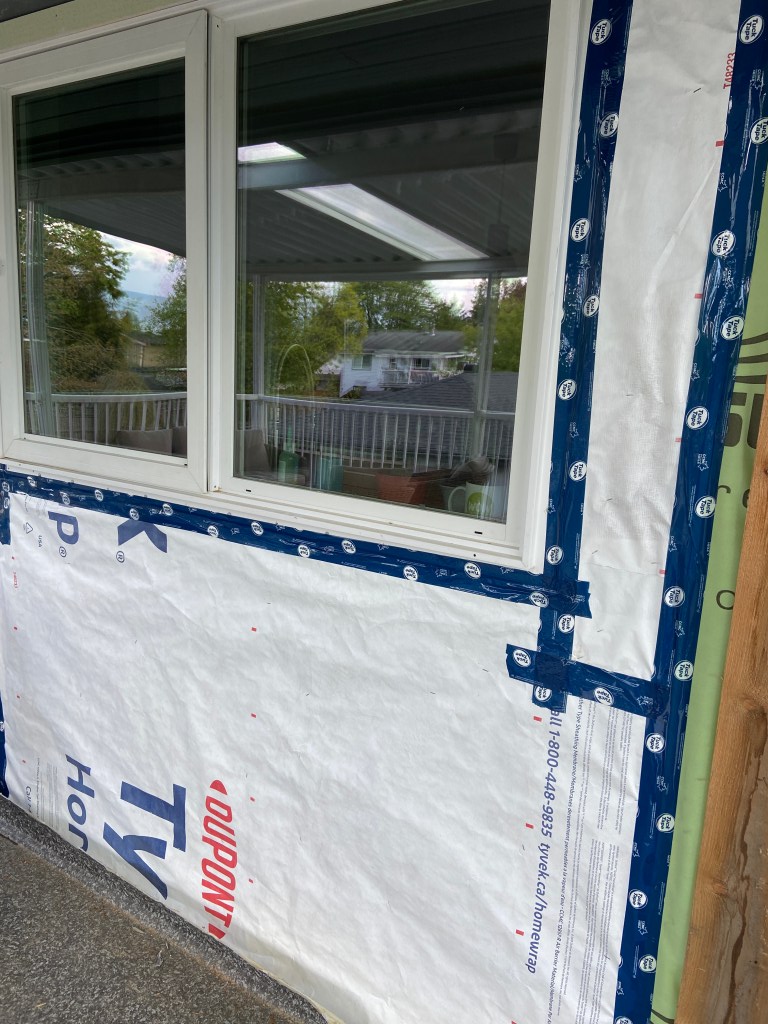 Cedar 1×10 bevel with protector wrap repair and installation. Cedar 1×8 channel siding repair and paint.